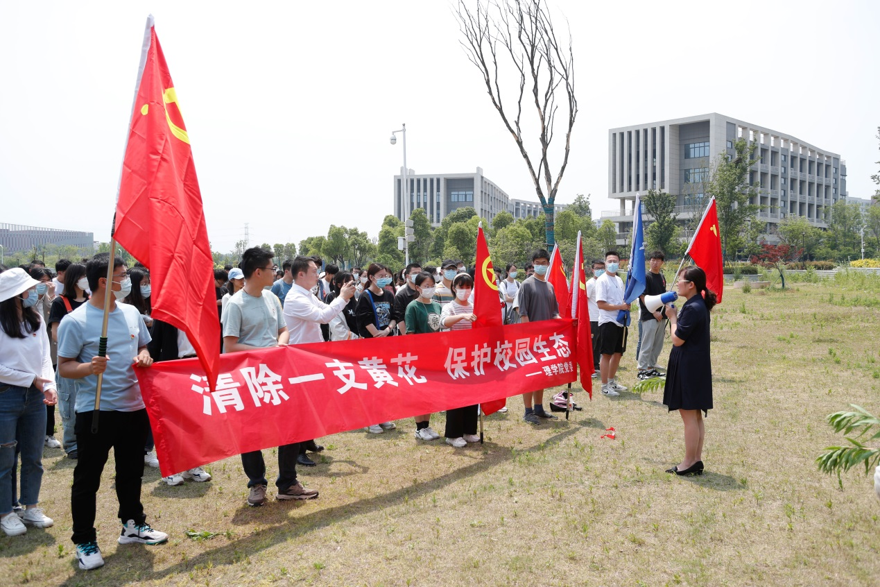 清除“加拿大一枝黄花” 保护校园生态:理公司党团员在行动