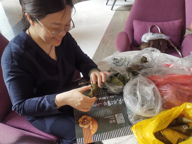 端午节当天,bw西汉姆联组织“我俩没来谁敢称王”掼蛋比赛暨“上得课堂下得厨房”系列活动之裹粽子活动。