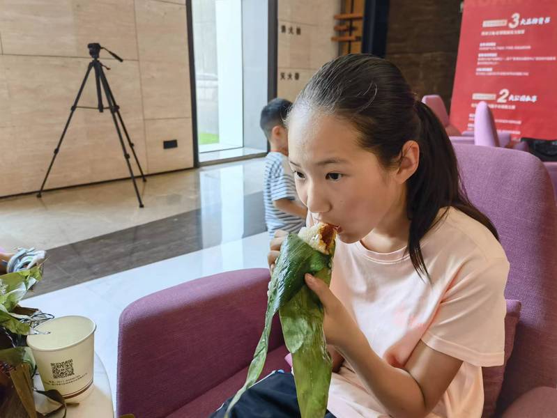 万水千山棕是情,糖馅肉馅啥都行。糯米粘着红枣香,粽叶裹着科大情。