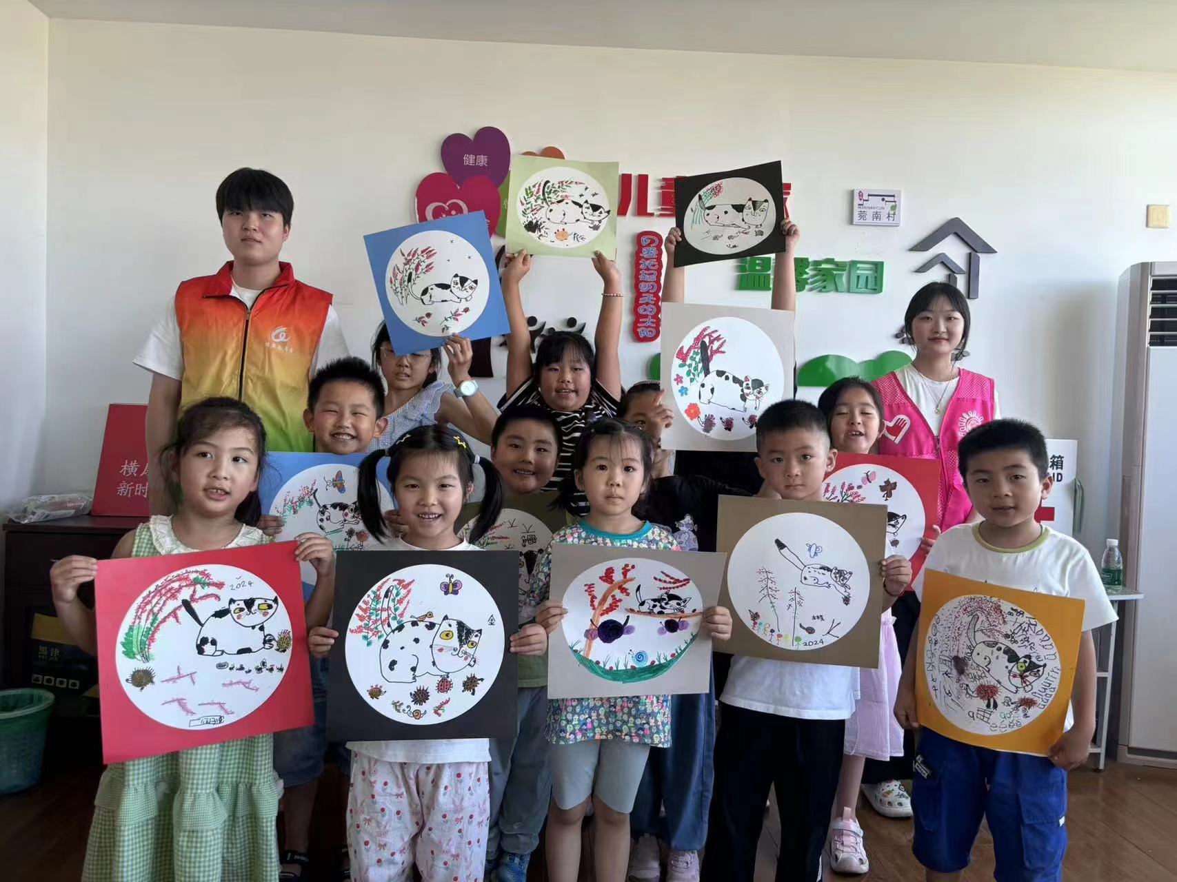 队伍成员黄玮梁在菀南村村民委员会参与了暑托班绘画课的助教工作。今天的课程是教小朋友们画猫咪和刺猬,黄玮梁协助老师将绘画材料分发给每个孩子,并耐心地讲解绘画步骤。他鼓励小朋友们大胆创作,并根据他们的需求提供一些绘画技巧上的指导。看着孩子们脸上洋溢着满足的笑容,他感到无比欣慰。黄玮梁说:“这次助教经历让我体会到与孩子们相处的快乐,也让我更加了解了孩子们对绘画的热爱。”