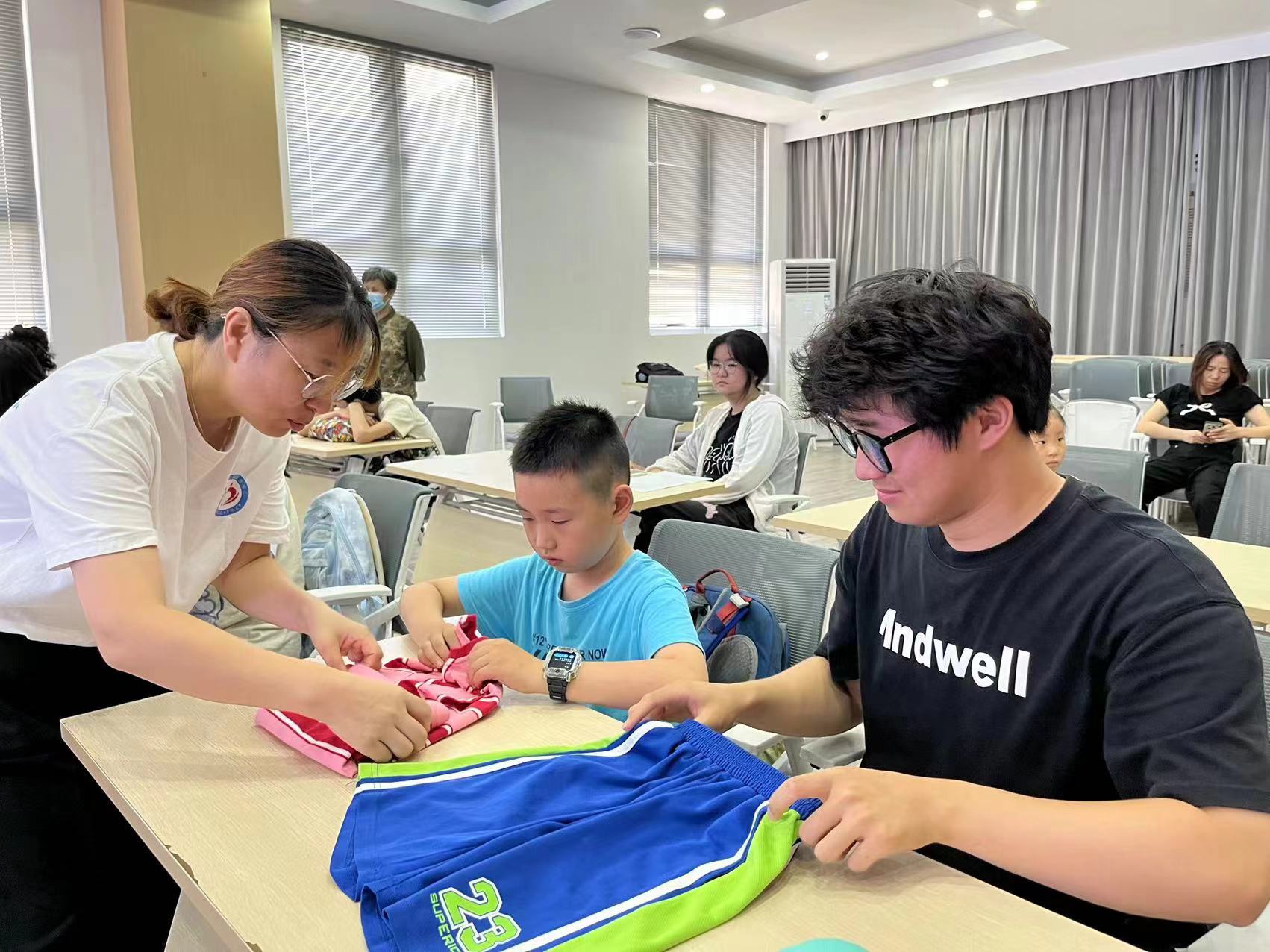 图2 实践团成员窦仁文在教小朋友整理衣服 窦仁文供图