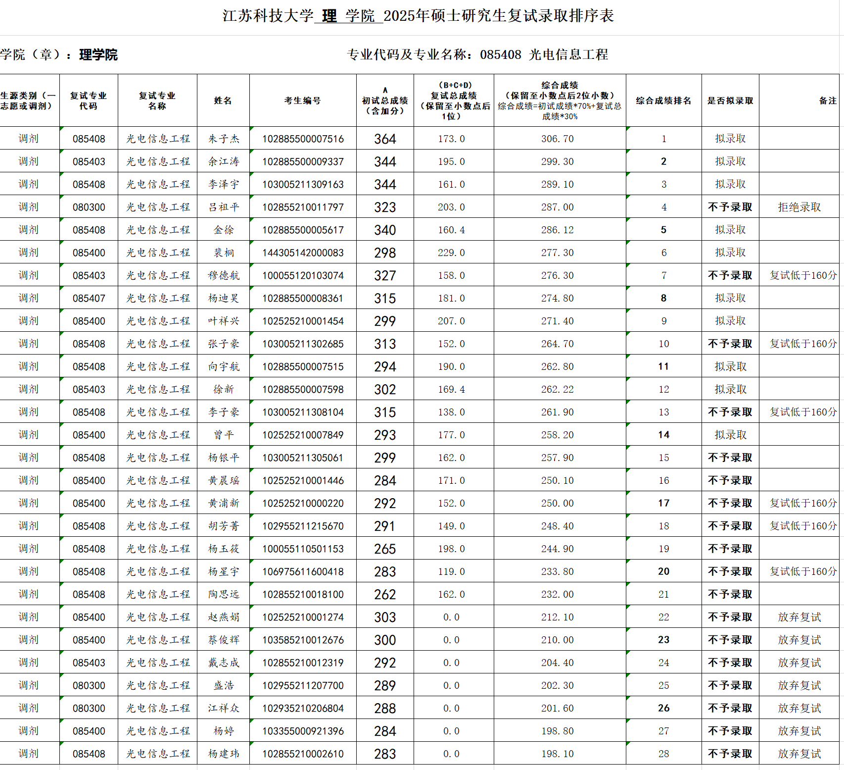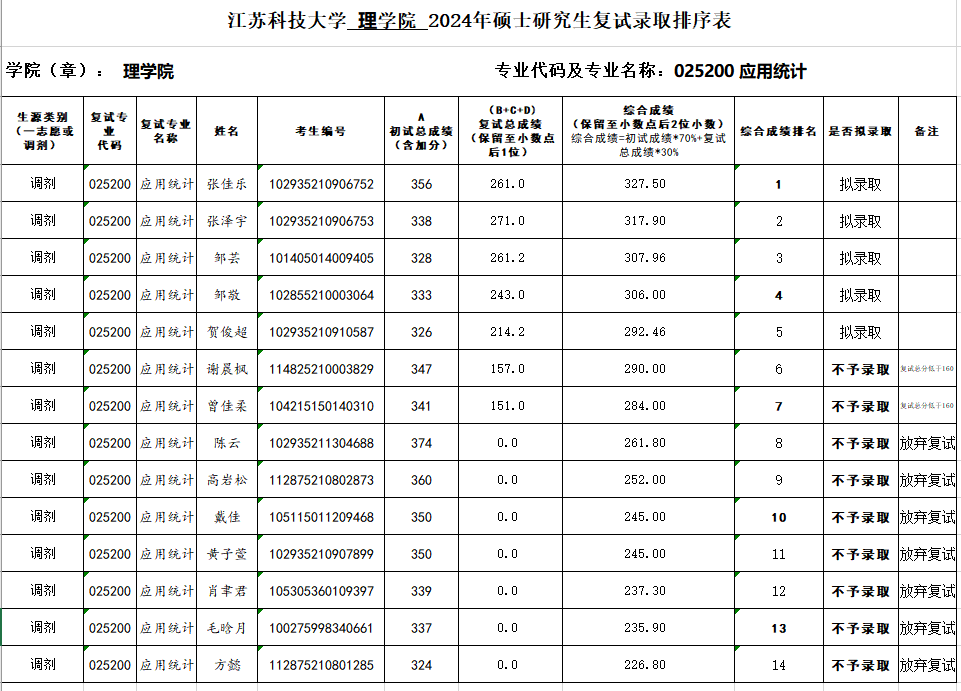 根据bw西汉姆联研究生复试细则(已发布公告),2025年bw西汉姆联物理学学硕、系统科学学硕、光电信息工程专硕和应用统计专硕第一批调剂复试成绩公示如下: