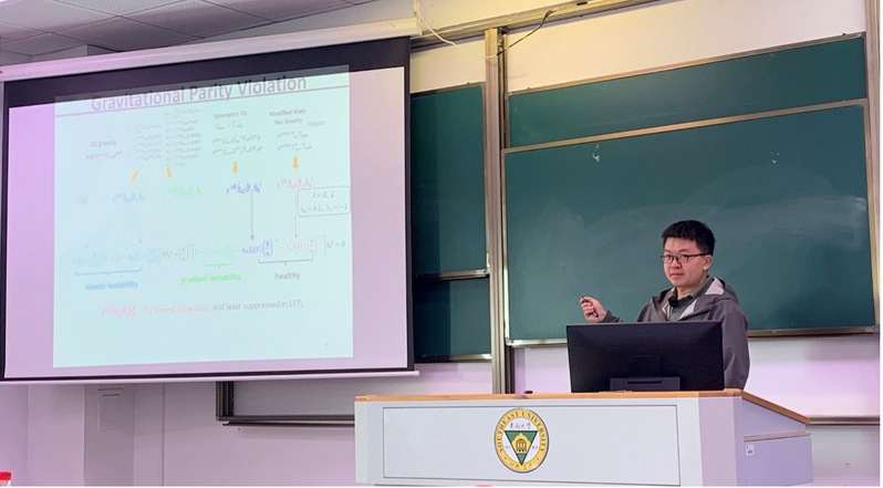10日下午及11日上午的“引力与宇宙学”分会现场,来自南京大学、南京航空航天大学、扬州大学、中国科学院紫金山天文台、东南大学、济南大学、北京师范大学等国内知名高校与研究机构的学者与员工们齐聚一堂,分享在引力与宇宙学的最新研究成果。本团队的樊炜老师、陈超老师、周孝严老师及硕士研究生徐安源同学作学术报告,充分展现了本团队在相关领域的研究进展与学术积淀。以下总结他们的报告: