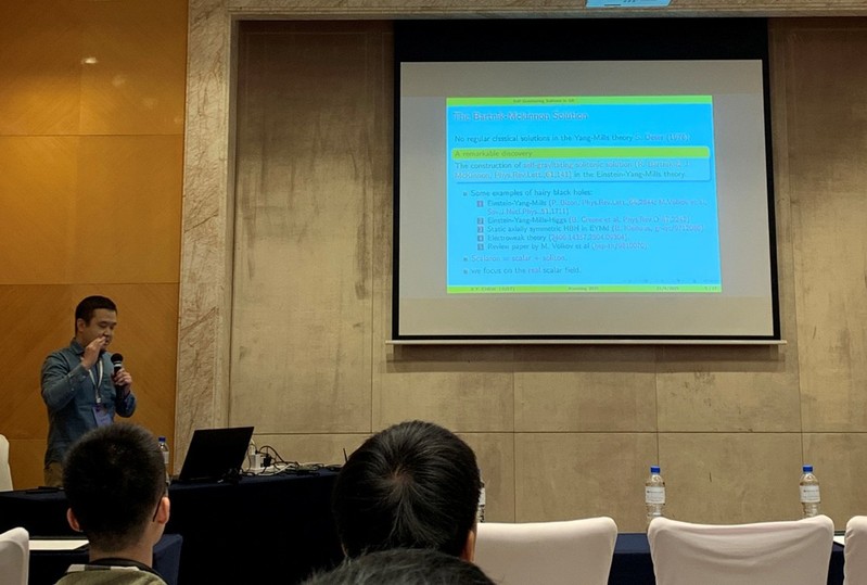 在接下来的两天中,会议进入各个研究方向的分会场报告阶段。4月21日上午,公司的两位教师—陈超老师与周孝严老师分别作了学术报告,展示了公司引力与宇宙学团队在前沿理论物理研究方面的最新成果,他们的报告总结如下: