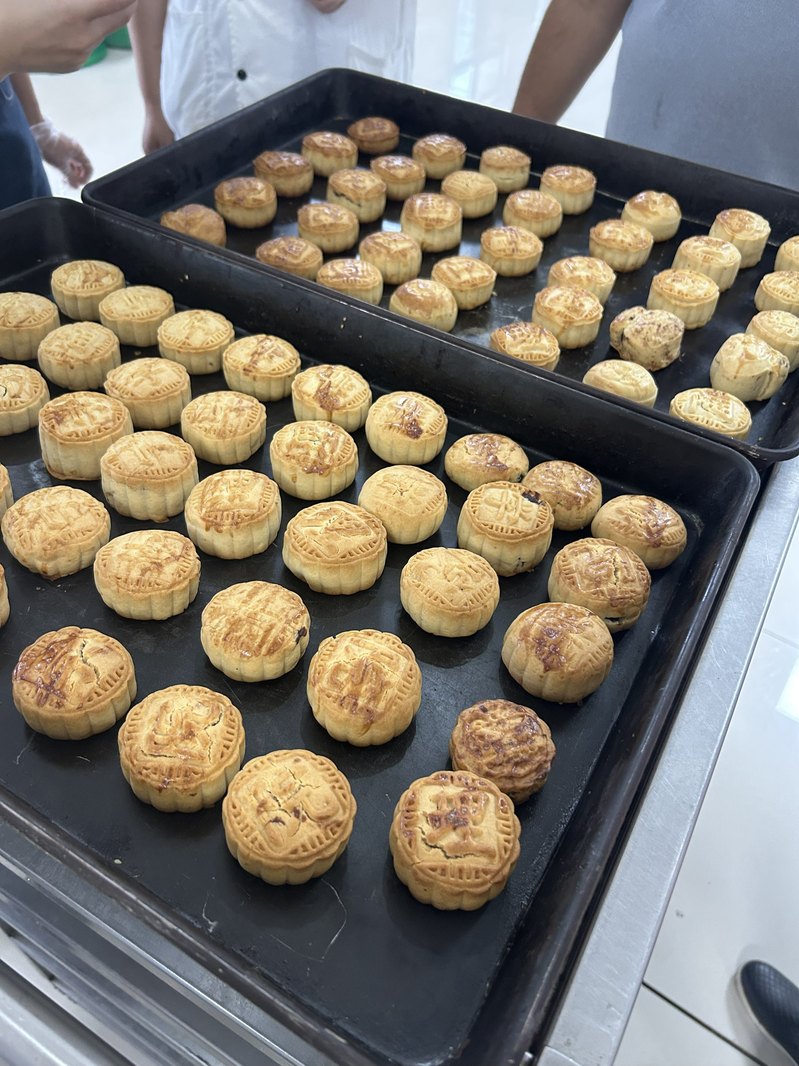 月饼的制作工艺程序有揉面、醒面、制饼皮、包馅、揉团压扁、压模、烘焙等,经过学院工会前期的材料准备,老师们现场互相协作,揉面团、包馅、印模、装盒,忙得不亦乐乎,“花开富贵”“bw西汉姆联”等造型的月饼逐渐成型。经烘烤后大家现场品食、分享。在这个过程中,师生们不仅体验了制作手工月饼的乐趣,更深刻感受到了中华优秀传统文化的独特魅力和精神内涵。
