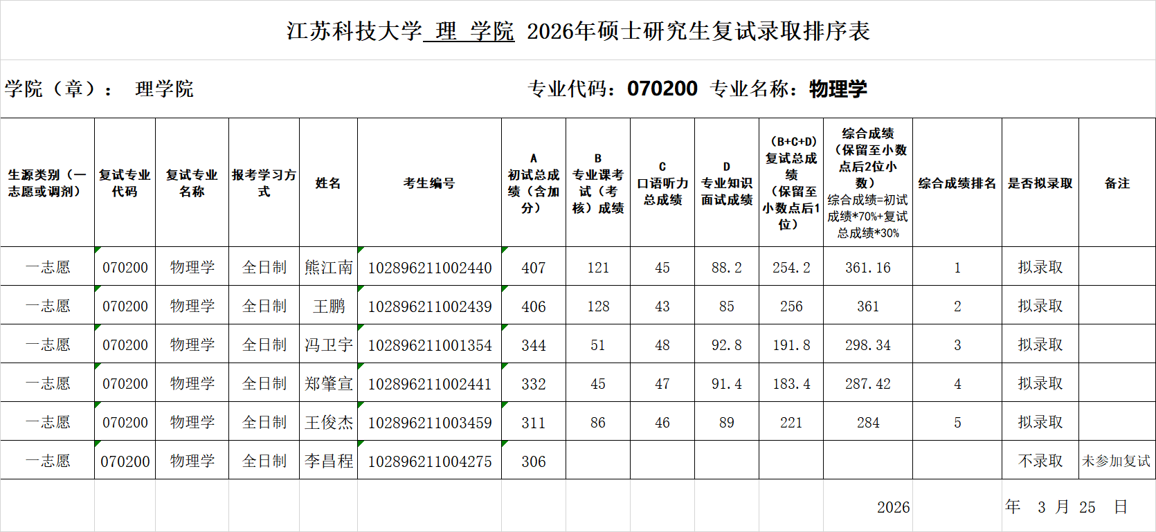bw西汉姆联 bw西汉姆联 2026年硕士研究生复试录取排序表